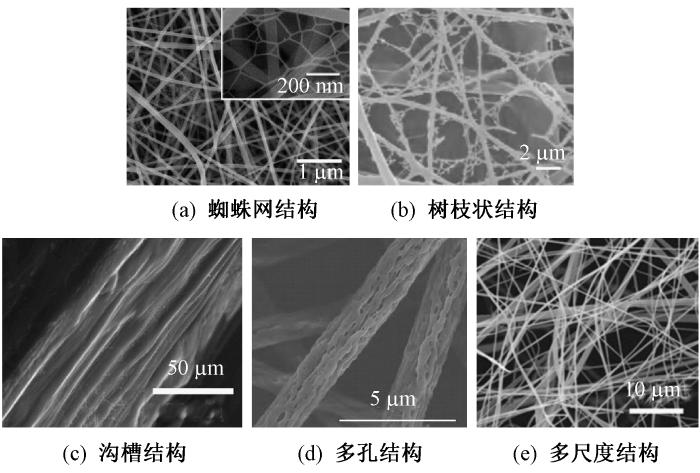 (a) Spider web structure; (b) Dendritic structure; (c) Groove structure; (d) Porous structure; (e) Multi-scale structure