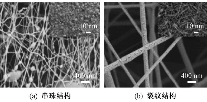 具有串珠与裂纹结构的纳米纤维材料表面扫描电镜照片