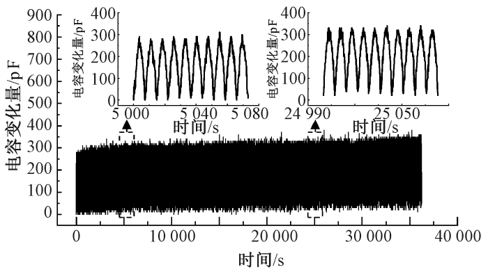 多次弯曲循环下复合纳米纤维膜离子传感器的电容变化