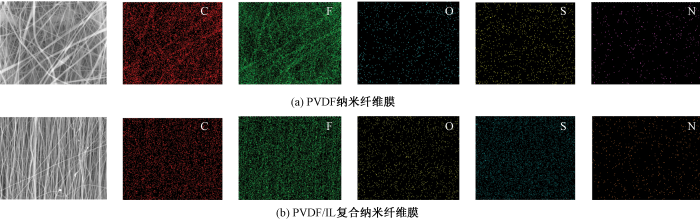 Element distribution map of nanofiber membranes.(a)PVDF nanofiber membrane;(b)PVDF/IL nanofiber membrane