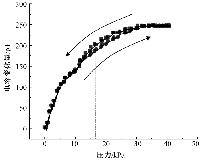 式中:S为传感器灵敏度,pF/kPa;C为传感器实时电容值,pF;C0为初始电容值,pF;P为施加在传感器上的压力,kPa。
