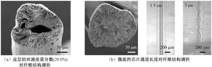 | 纺丝方案 | 皮层纺丝液 | 芯层纺丝液 | 收丝速度/ (m·h-1) | 微流控芯片 通道长度/cm | ||