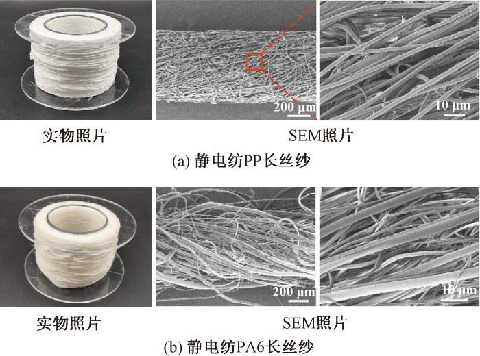 熔融静电纺PP纱线和PA6纱线的实物及SEM照片