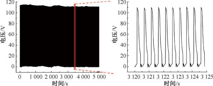 为评估TENG在长期稳定性和使用寿命,本文对其在5 000 s内工作的输出性能进行了测试,结果如图10所示。可见,TENG在长时间工作后依然能够保持优异的电输出性能,证明其具有较长的使用寿命和良好的稳定性。