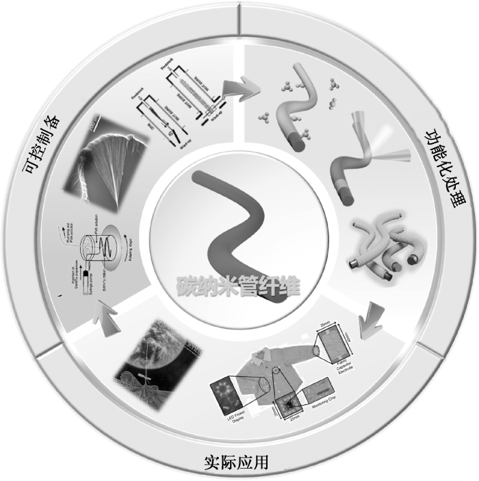 总之,越来越多的学术和工业界的研究已经说明了碳纳米管功能纤维的巨大应用前景,尤其是在智能可穿戴设备、航空航天、储能等新兴和尖端领域,这对于碳纳米管功能纤维的未来发展提出了更高的目标和要求。未来需以实际需求为导向,积极吸纳交叉学科中的概念与方法,开发碳纳米管功能纤维的先进制备技术,拓展其应用领域,真正实现其在尖端领域的广泛应用。