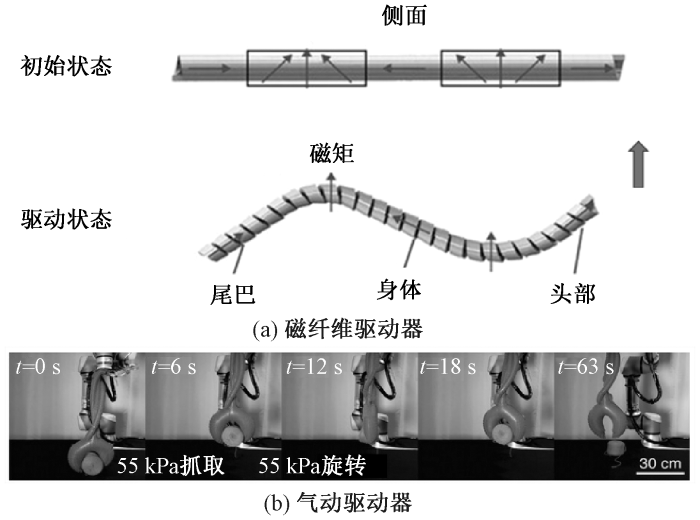 除上述常规驱动方式外,磁驱动和气动驱动借助外部磁场或气压来实现材料变形,具有大应力、大应变以及快速响应的优势。