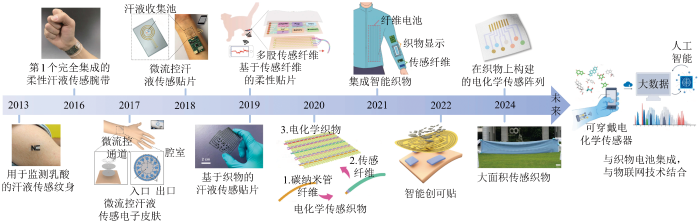 可穿戴电化学传感器实现与织物集成的发展时间线