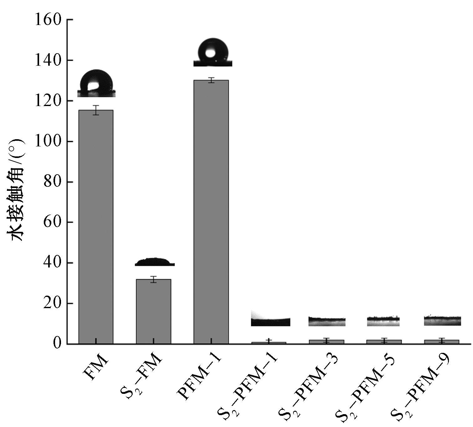 | 图8 磺化前后纤维膜水接触角 |