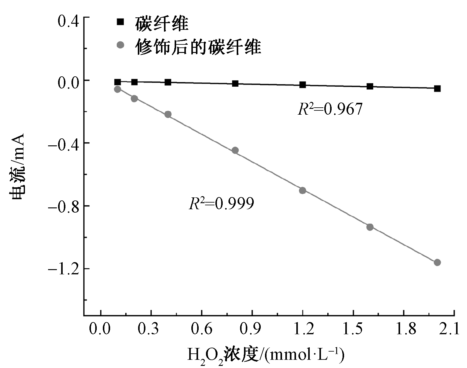 | 图7 H2O2浓度和电流的线性拟合曲线 |