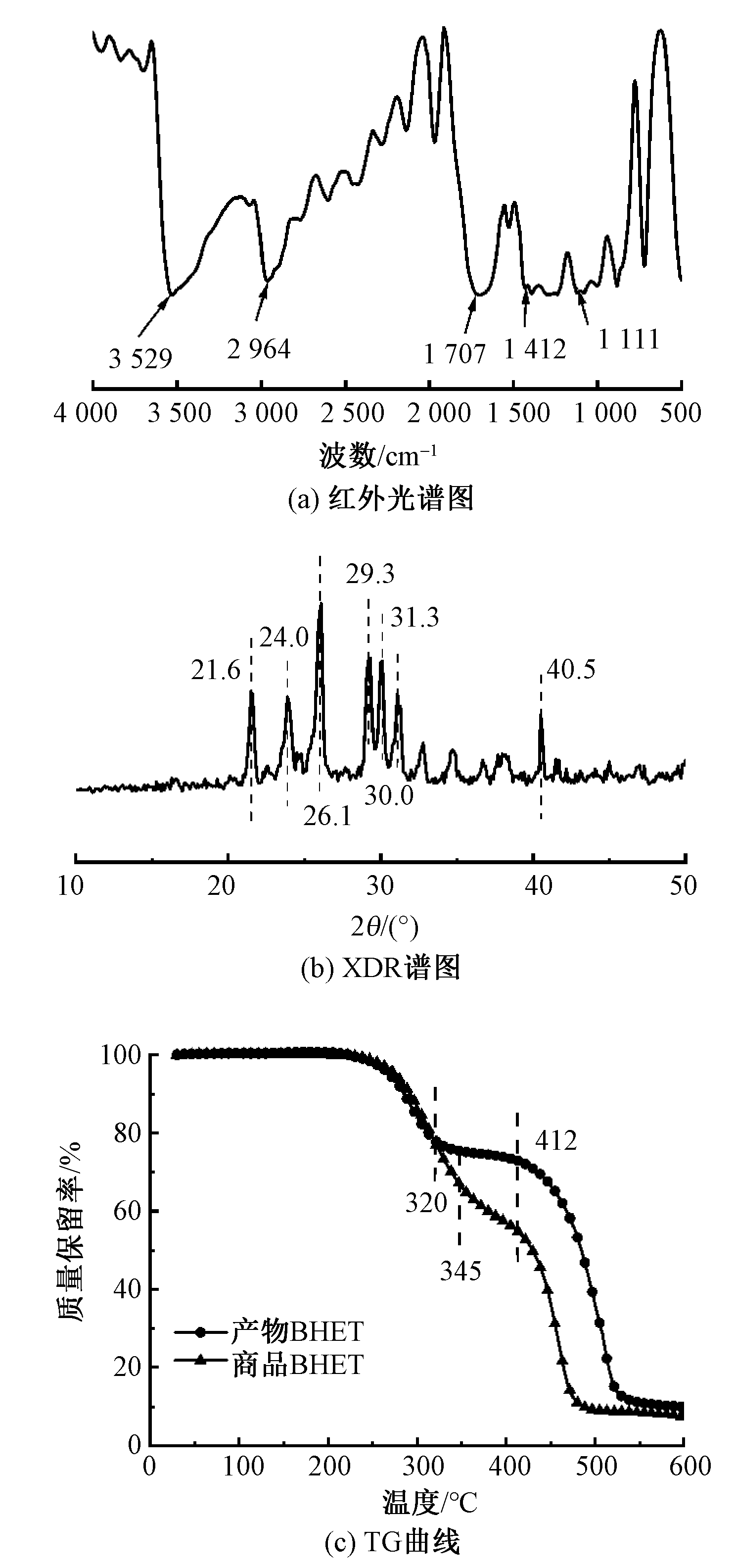 | Fig.3 Analysis result of alcoholysis products.(a) FT-IR spectra; (b) XRD pattern; (c) TG curves |