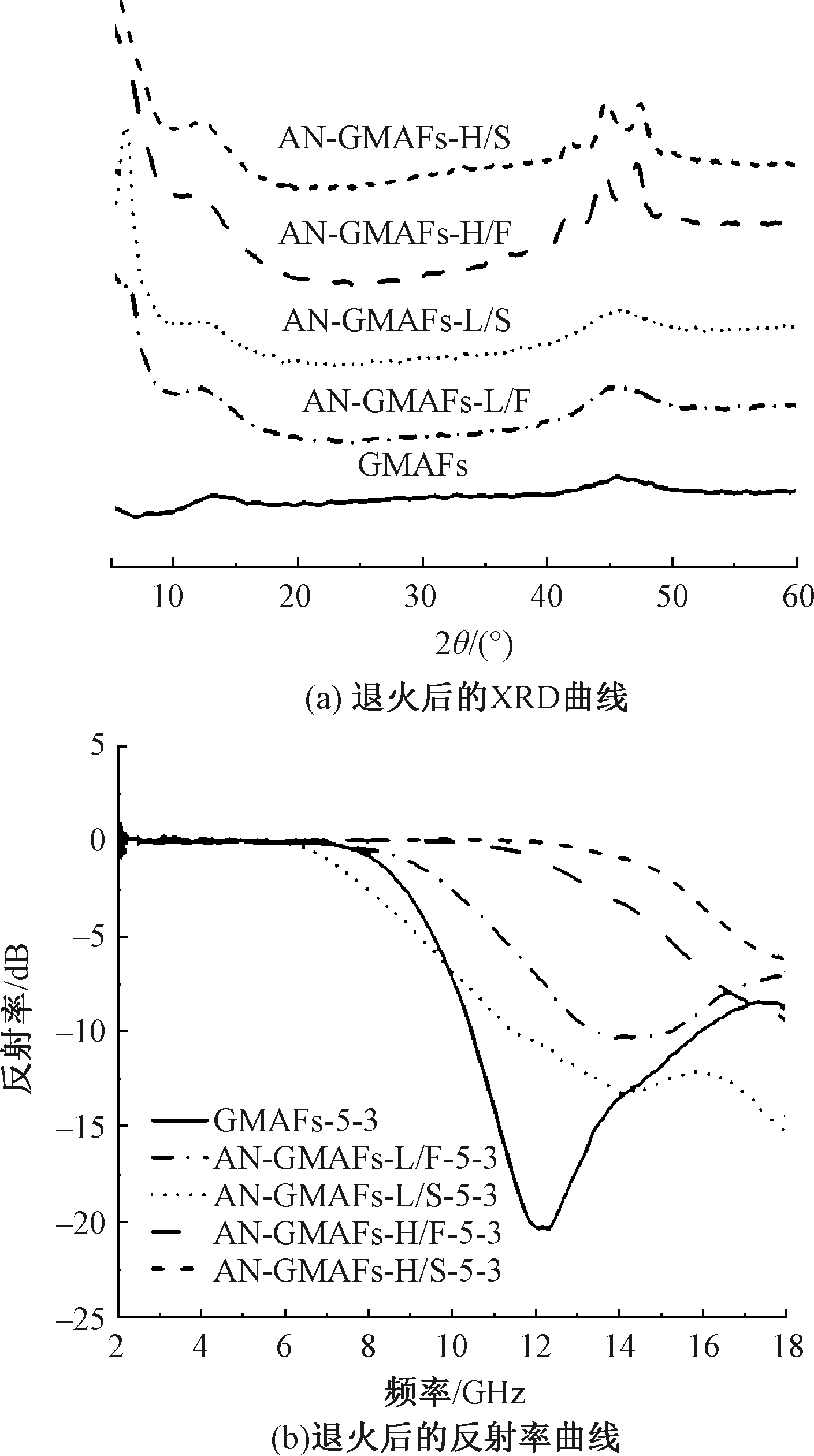 | Fig.12 Test curves of GMAFs with different annealing parameters. (a) XRD curves; (b) Reflectivity curves |