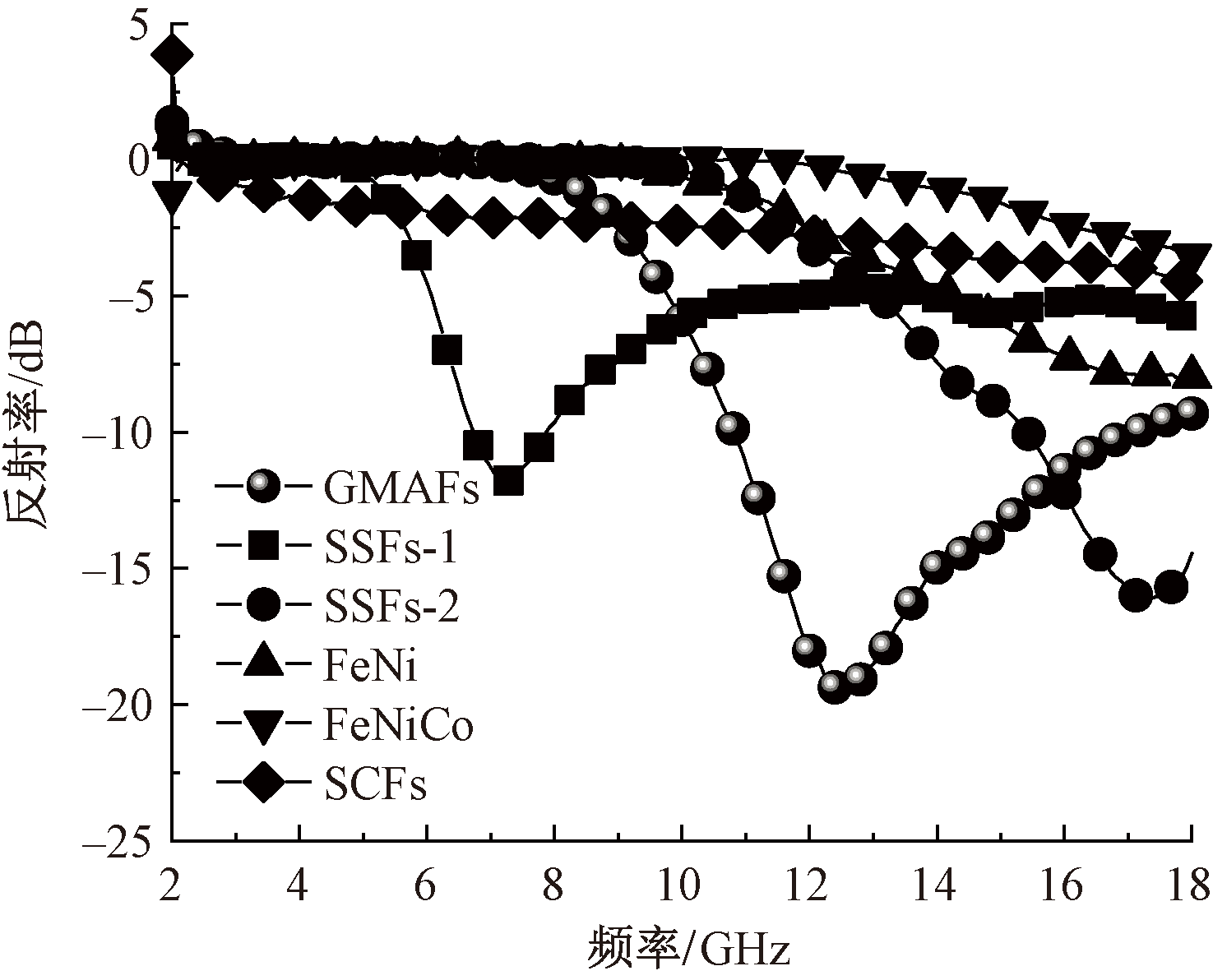 | 图13 不同种类纤维5-3样品的反射率曲线 |
